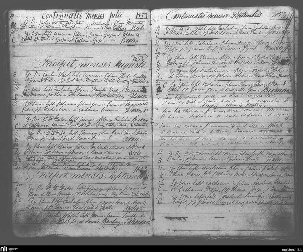 Ballybunion; County of Kerry; Diocese of Kerry. Baptisms, July 1853 to Oct. 1853
