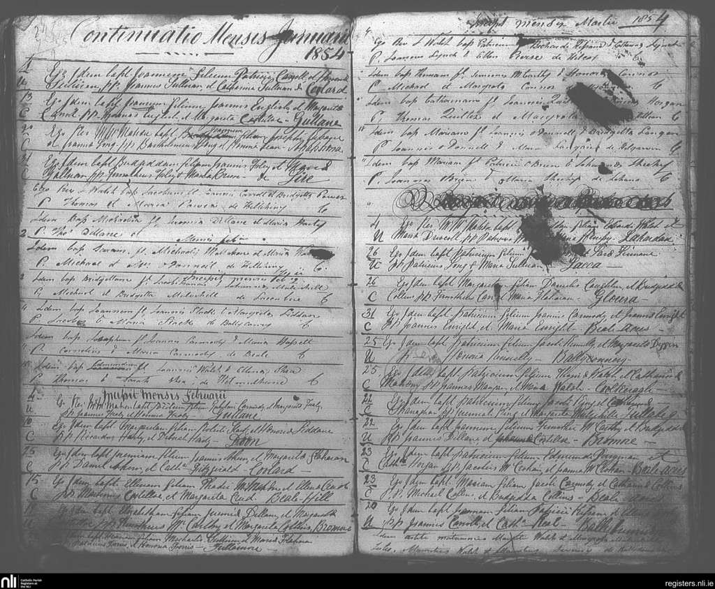 Ballybunion; County of Kerry; Diocese of Kerry. Baptisms, Jan. 1854 to Mar. 1854