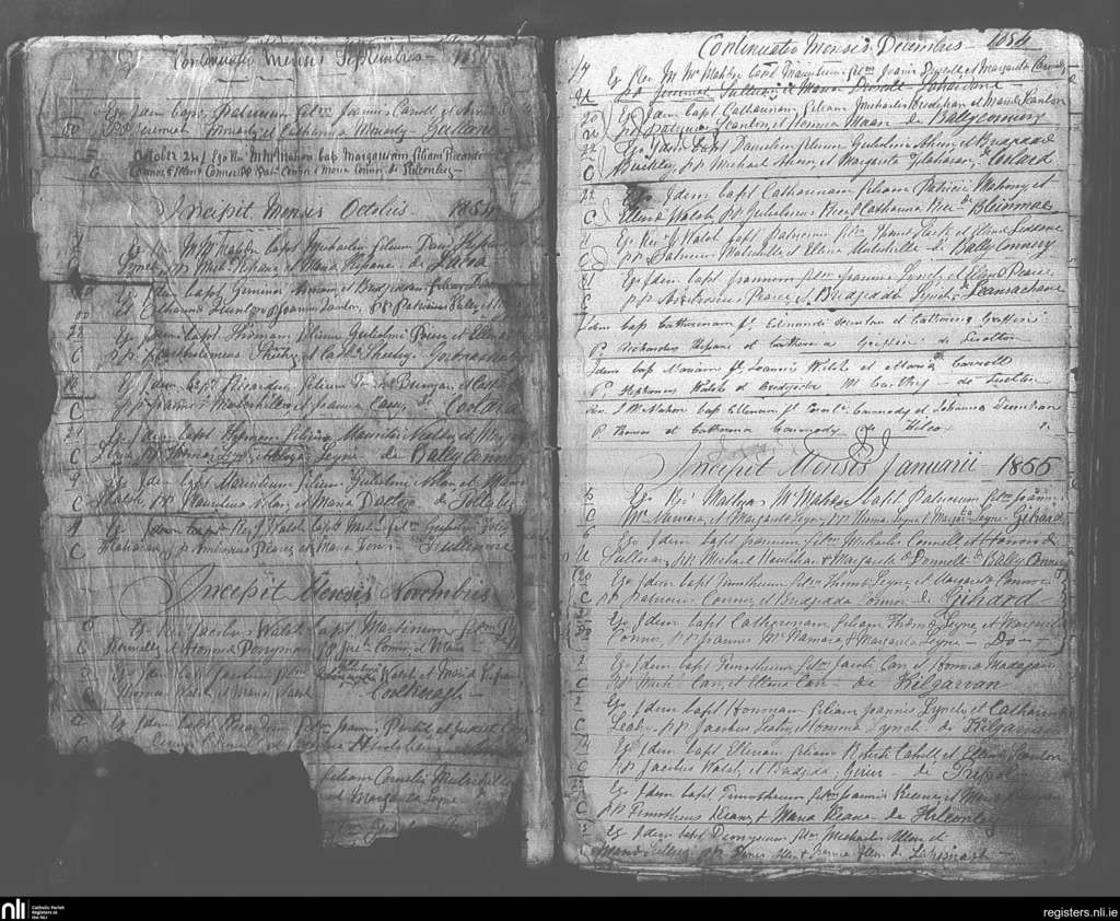 Ballybunion; County of Kerry; Diocese of Kerry. Baptisms, Sep. 1854 to Jan. 1855