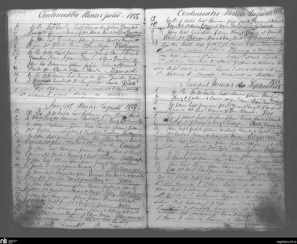 Ballybunion; County of Kerry; Diocese of Kerry. Baptisms, July 1855 to Sep. 1855
