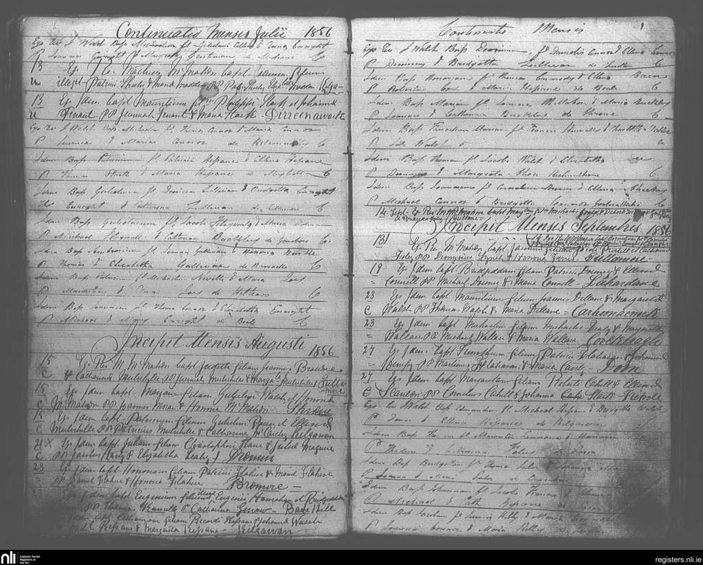 Ballybunion; County of Kerry; Diocese of Kerry. Baptisms, July 1856 to Sep. 1856