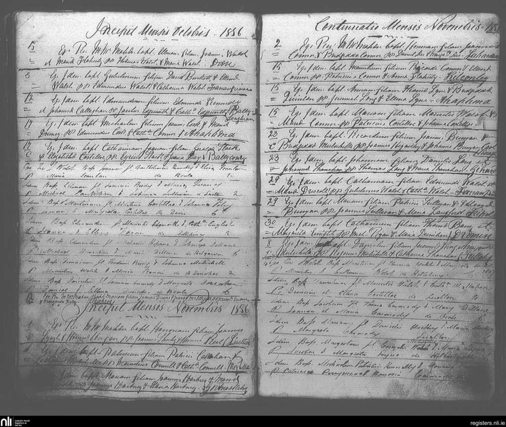 Ballybunion; County of Kerry; Diocese of Kerry. Baptisms, Oct. 1856 to Nov. 1856