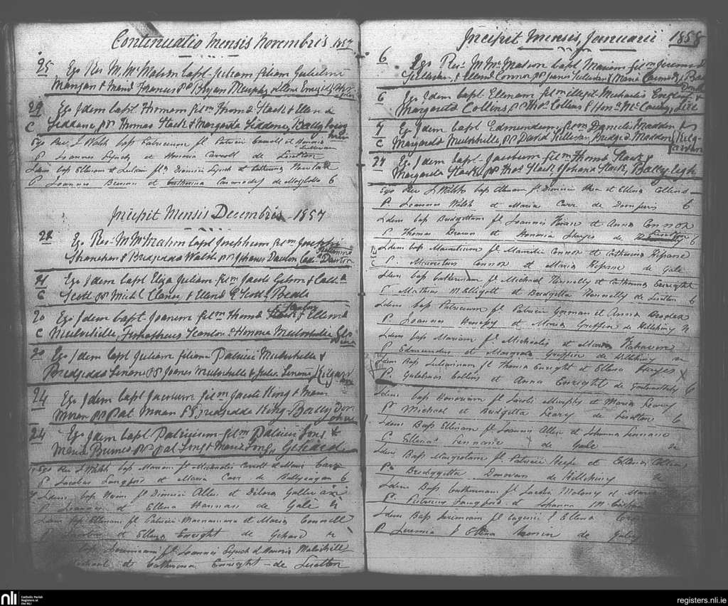 Ballybunion; County of Kerry; Diocese of Kerry. Baptisms, Nov. 1857 to Jan. 1858