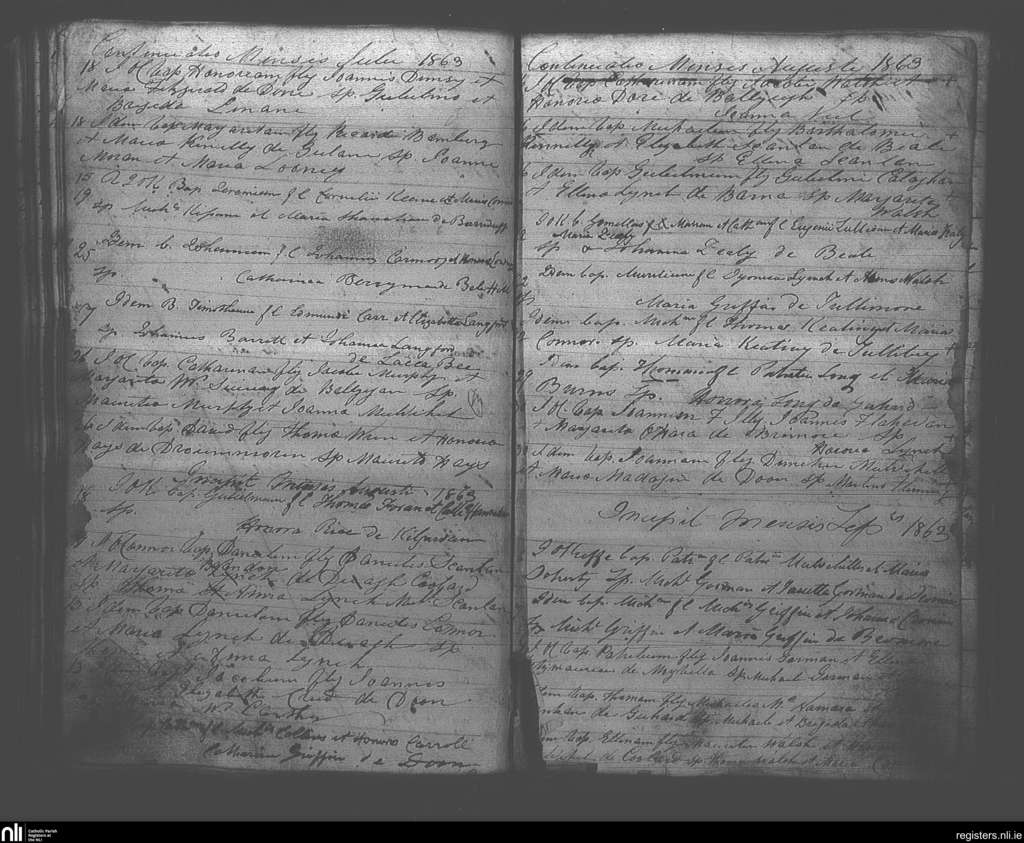 Ballybunion; County of Kerry; Diocese of Kerry. Baptisms, July 1863 to Sep. 1863