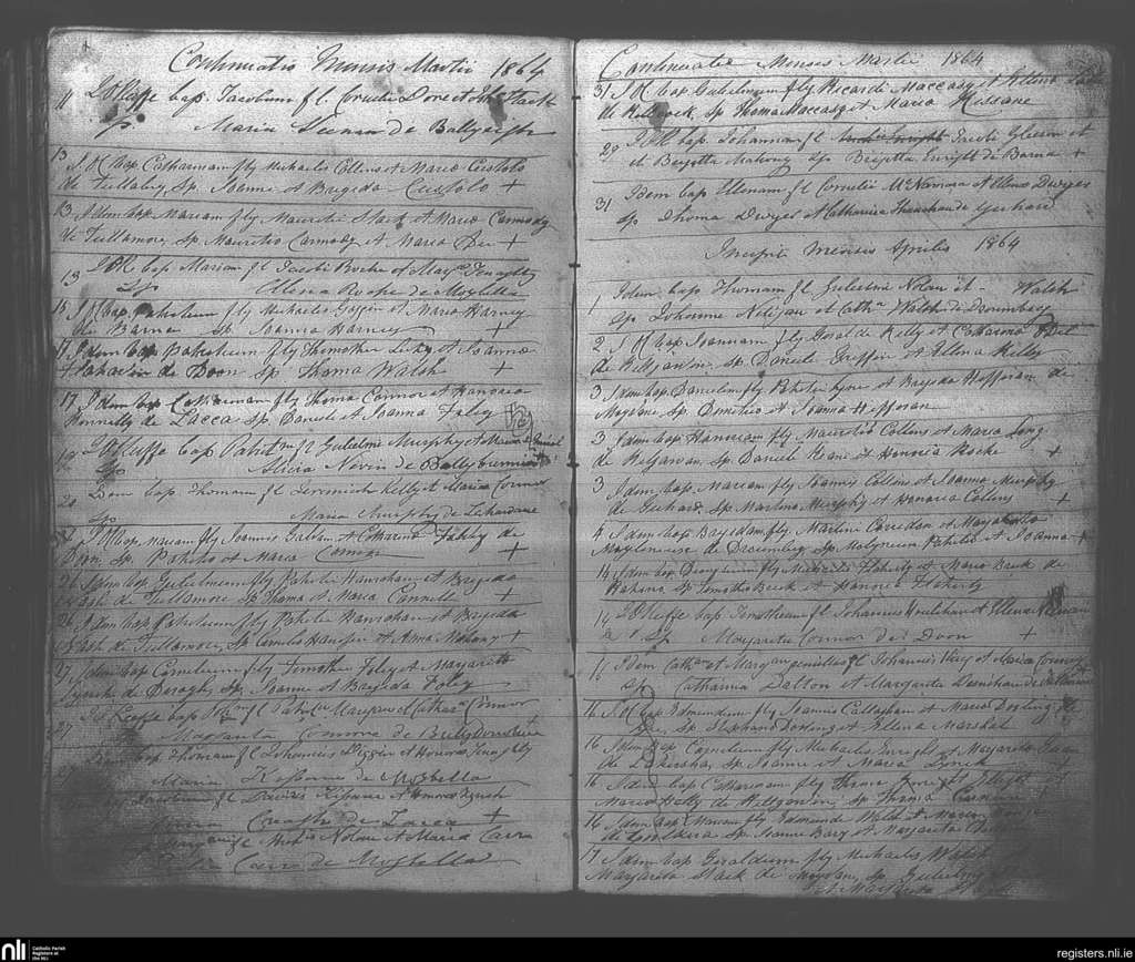 Ballybunion; County of Kerry; Diocese of Kerry. Baptisms, Mar. 1864 to Apr. 1864