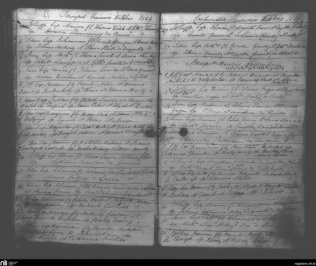 Ballybunion; County of Kerry; Diocese of Kerry. Baptisms, Oct. 1864 to Nov. 1864