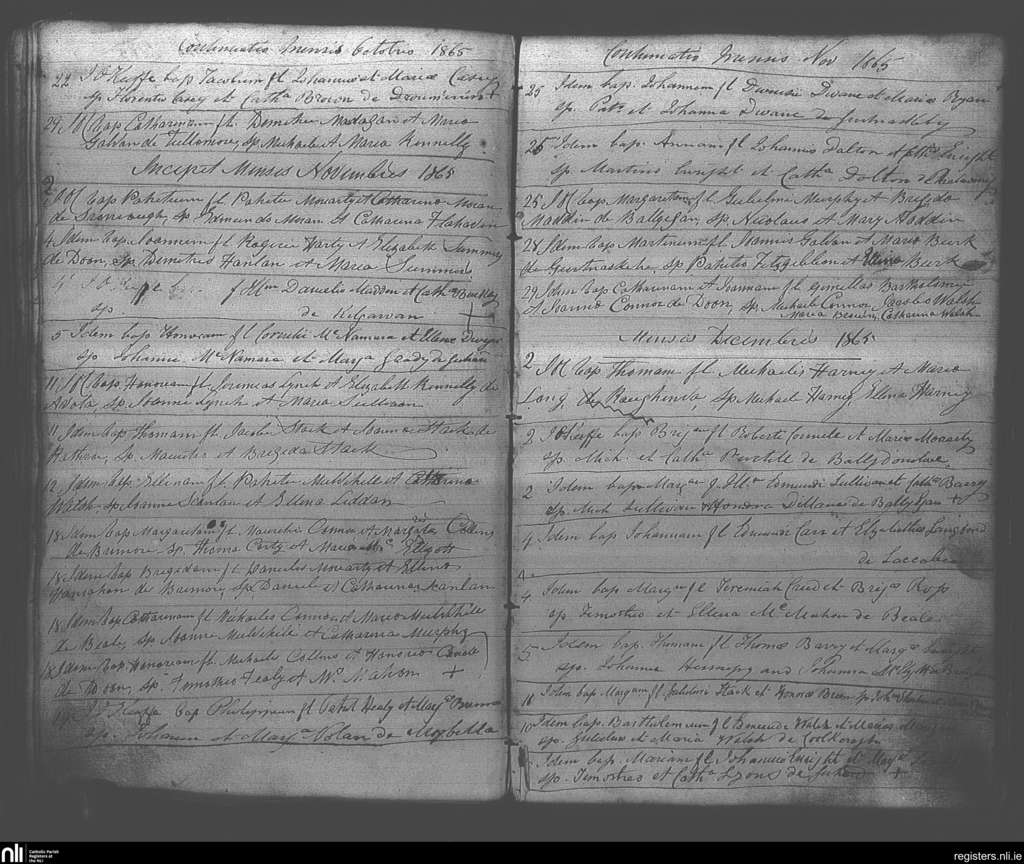 Ballybunion; County of Kerry; Diocese of Kerry. Baptisms, Oct. 1865 to Dec. 1865
