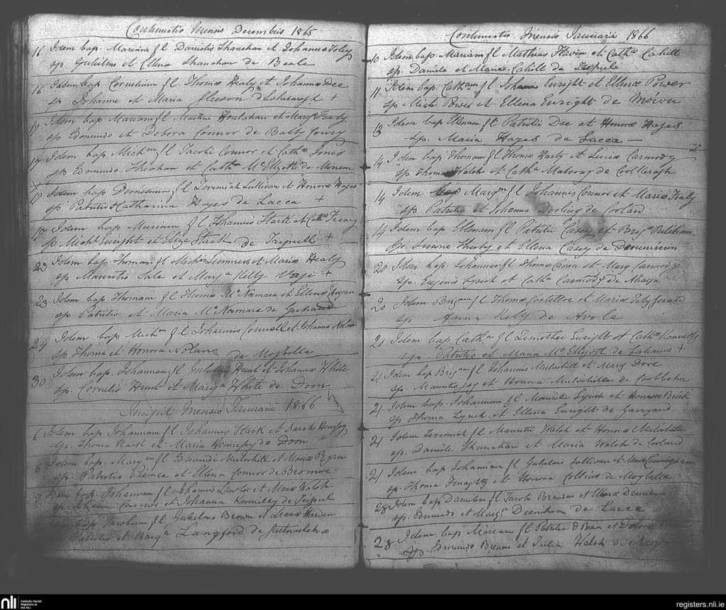 Ballybunion; County of Kerry; Diocese of Kerry. Baptisms, Dec. 1865 to Jan. 1866