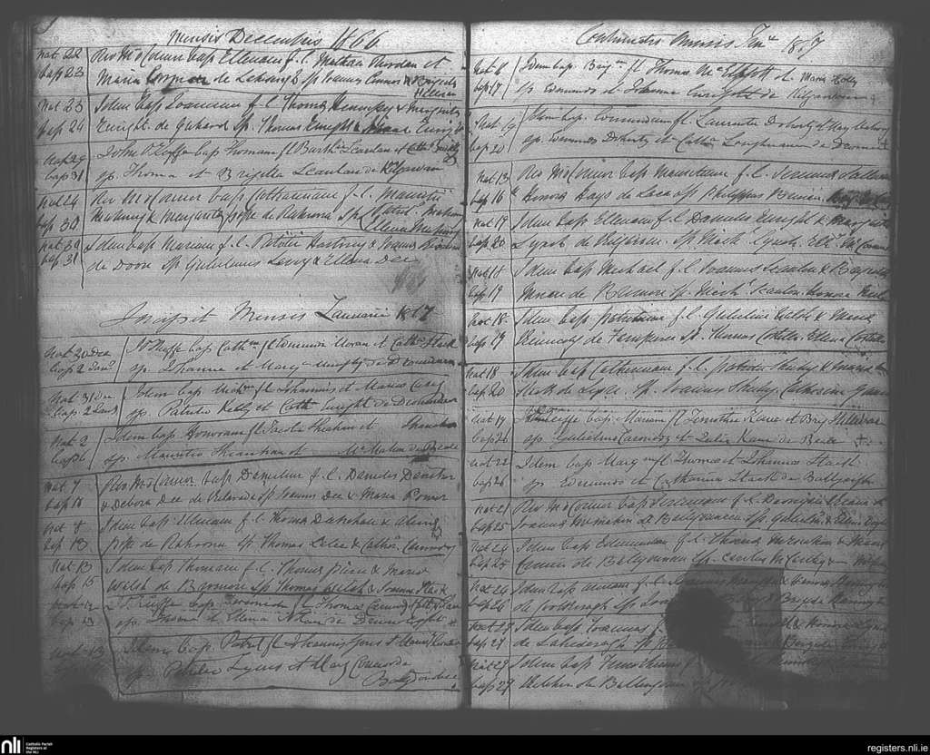 Ballybunion; County of Kerry; Diocese of Kerry. Baptisms, Dec. 1866 to Jan. 1867