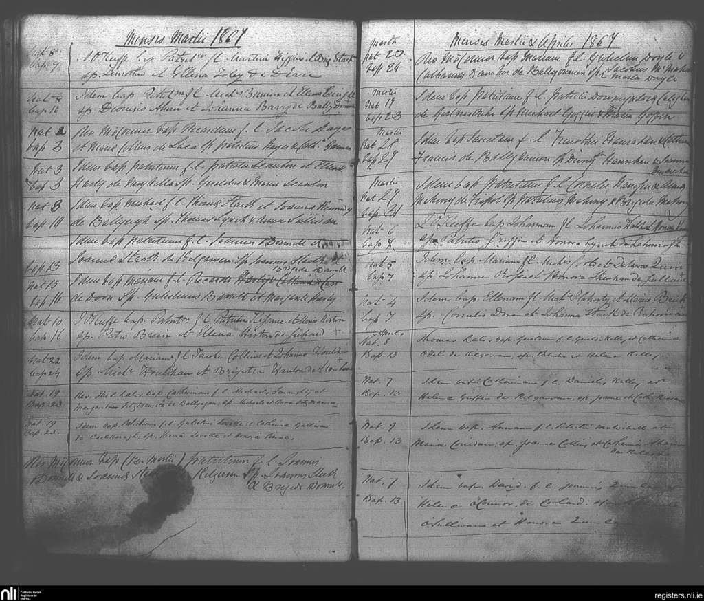 Ballybunion; County of Kerry; Diocese of Kerry. Baptisms, Mar. 1867 to Apr. 1867