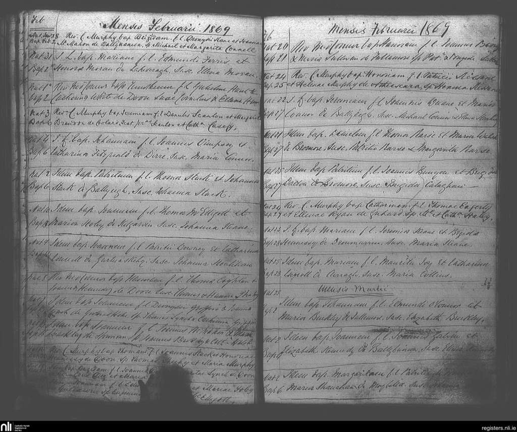 Ballybunion; County of Kerry; Diocese of Kerry. Baptisms, Feb. 1869 to Mar. 1869