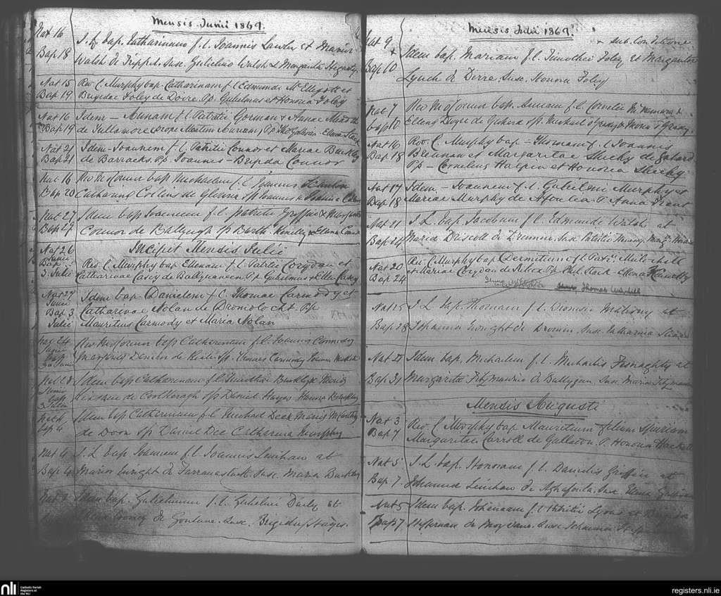 Ballybunion; County of Kerry; Diocese of Kerry. Baptisms, June 1869 to Aug. 1869
