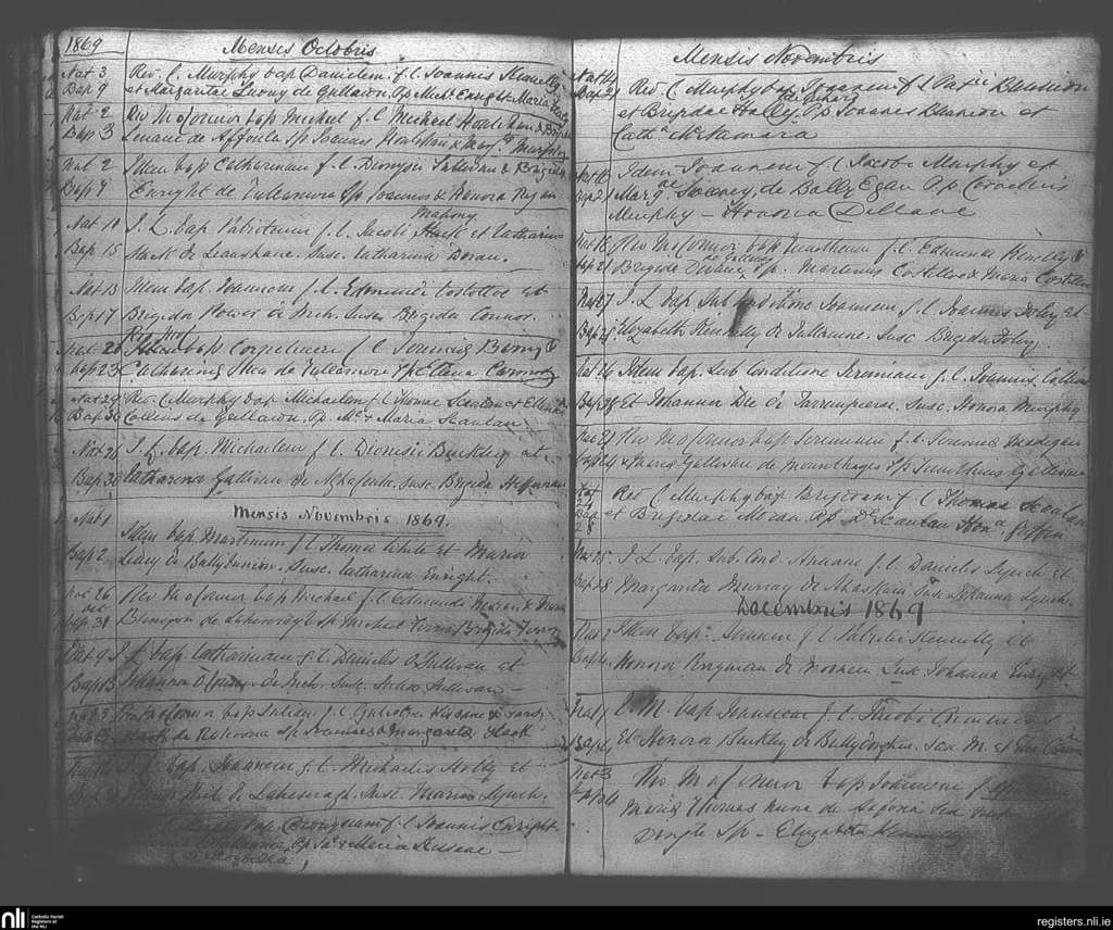Ballybunion; County of Kerry; Diocese of Kerry. Baptisms, Oct. 1869 to Dec. 1869
