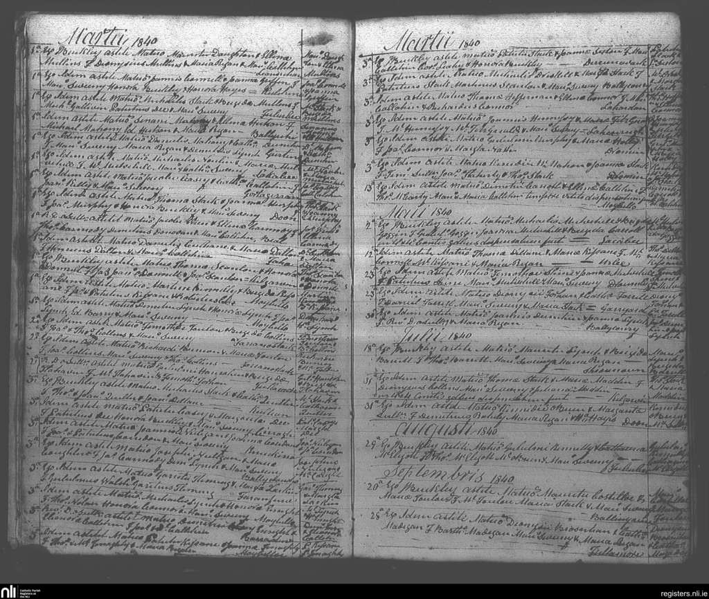 Ballybunion; County of Kerry; Diocese of Kerry. Marriages, Mar. 1840 to Sep. 1840