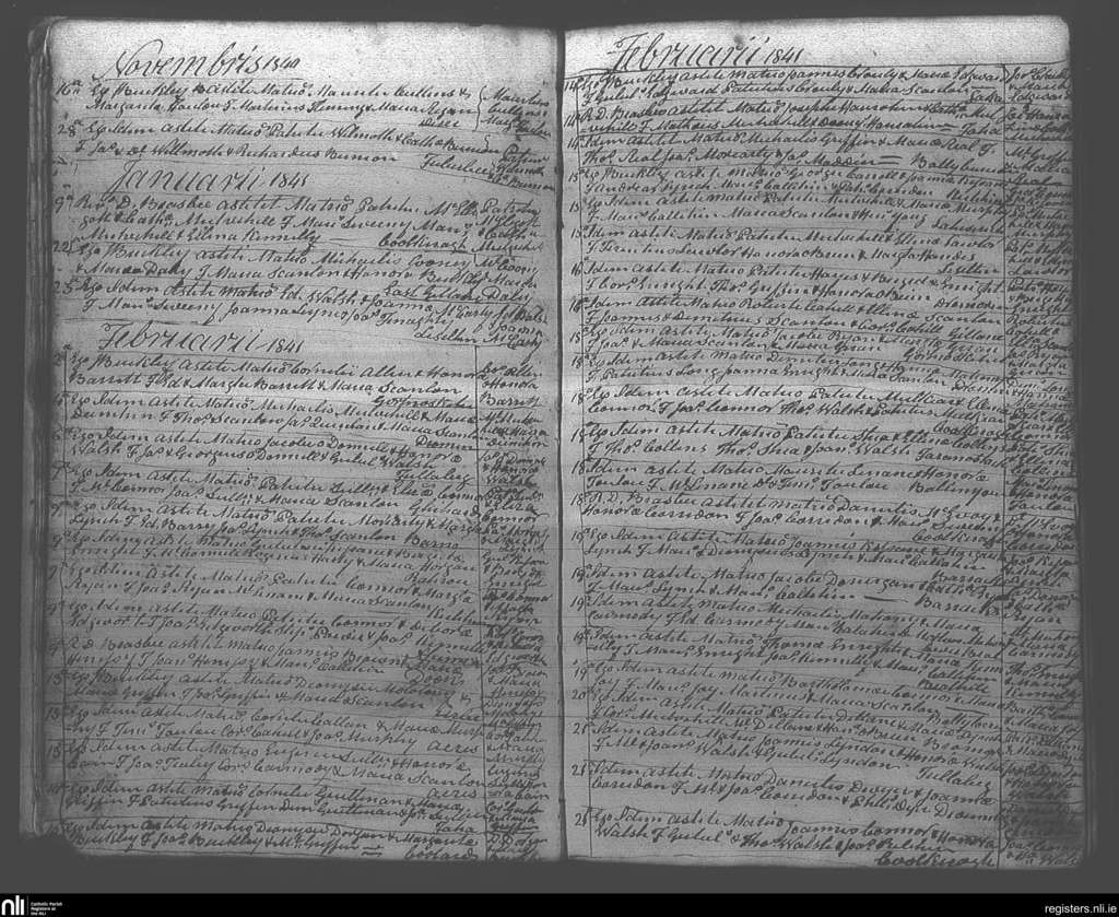 Ballybunion; County of Kerry; Diocese of Kerry. Marriages, Nov. 1840 to Feb. 1841