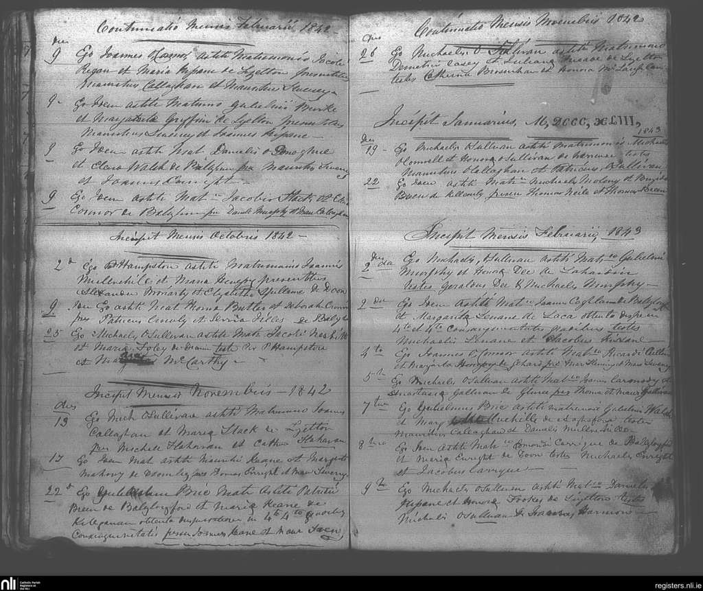 Ballybunion; County of Kerry; Diocese of Kerry. Marriages, Feb. 1842 to Feb. 1843