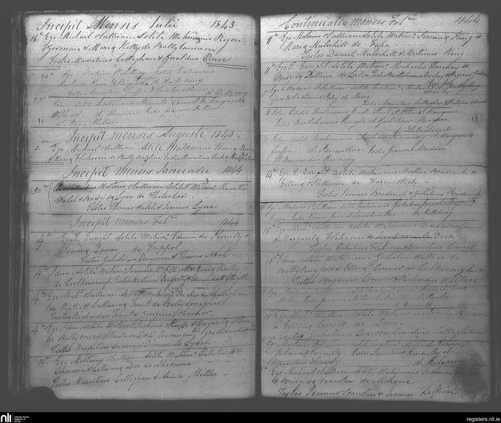 Ballybunion; County of Kerry; Diocese of Kerry. Marriages, July 1843 to Feb. 1844