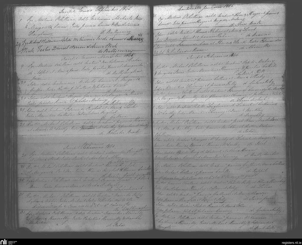 Ballybunion; County of Kerry; Diocese of Kerry. Marriages, Sep. 1845 to Feb. 1846