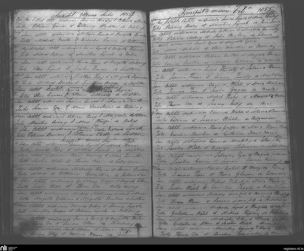 Ballybunion; County of Kerry; Diocese of Kerry. Marriages, Feb. 1854 to Feb. 1855