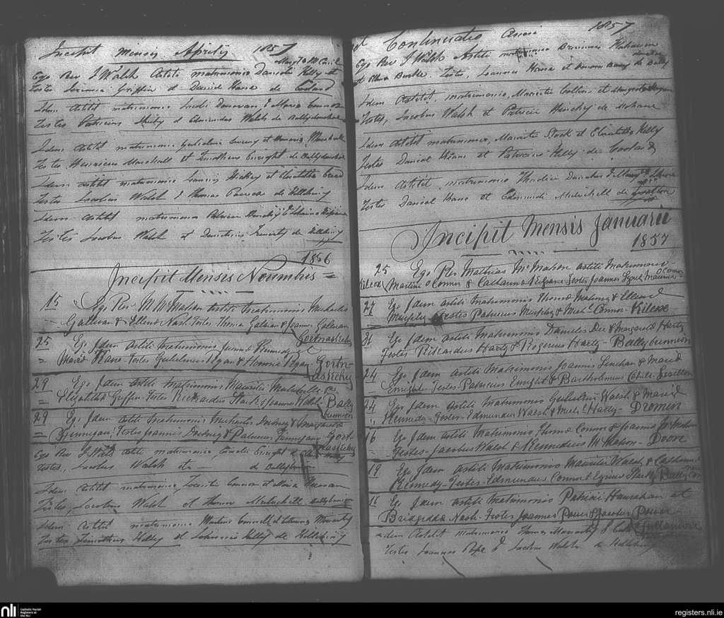 Ballybunion; County of Kerry; Diocese of Kerry. Marriages, Nov. 1856 to Oct. 1857