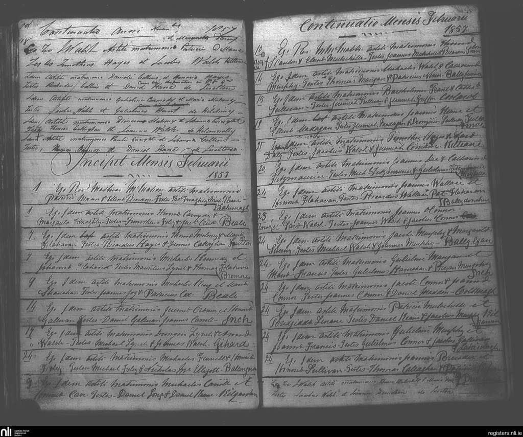Ballybunion; County of Kerry; Diocese of Kerry. Marriages, Feb. 1857 to Nov. 1857
