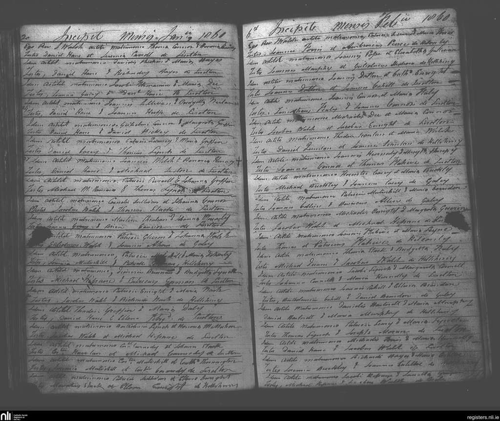 Ballybunion; County of Kerry; Diocese of Kerry. Marriages, Jan. 1860 to Feb. 1860