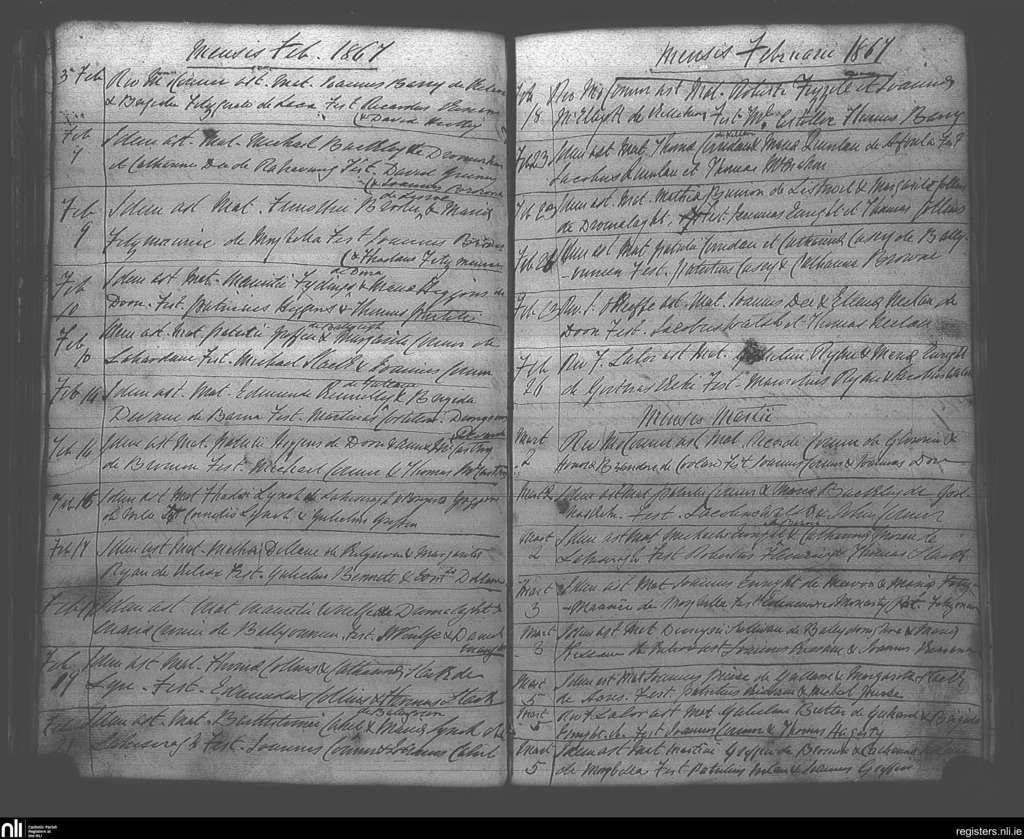 Ballybunion; County of Kerry; Diocese of Kerry. Marriages, Feb. 1867 to Mar. 1867