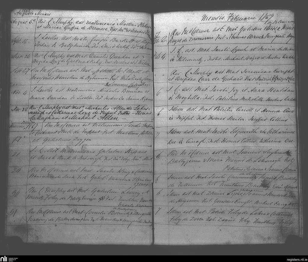 Ballybunion; County of Kerry; Diocese of Kerry. Marriages, Aug. 1868 to Feb. 1869