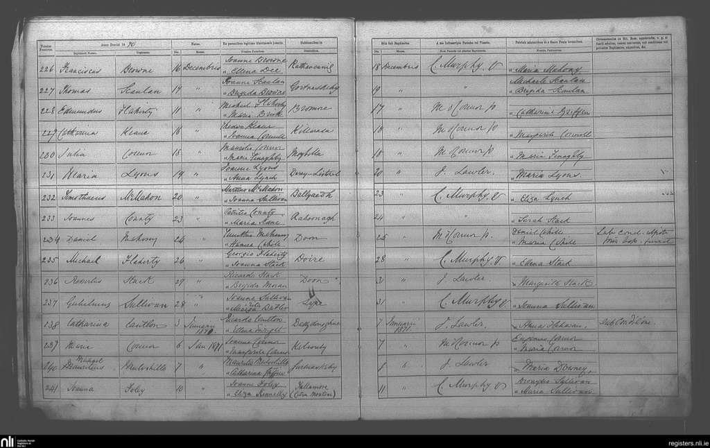 Ballybunion; County of Kerry; Diocese of Kerry. Baptisms, Dec. 1870 to Jan. 1871