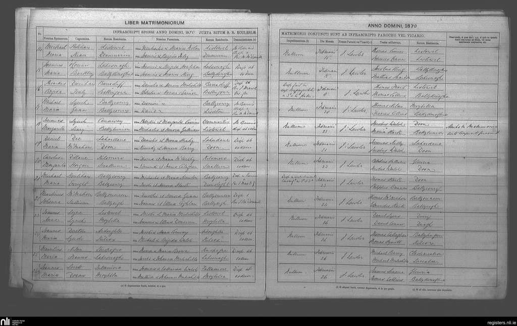 Ballybunion; County of Kerry; Diocese of Kerry. Marriages, Feb. 1870
