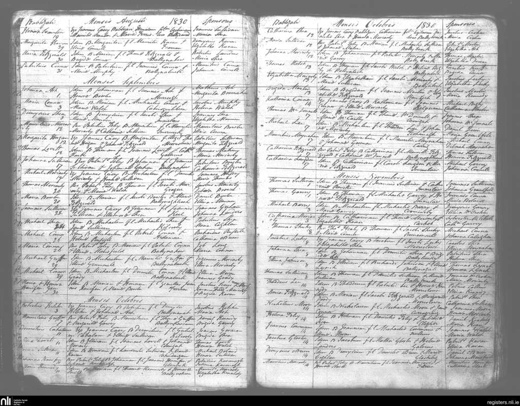 Kilmelchidar; County of Kerry; Diocese of Kerry. Baptisms, Aug. 1830 to Nov. 1830