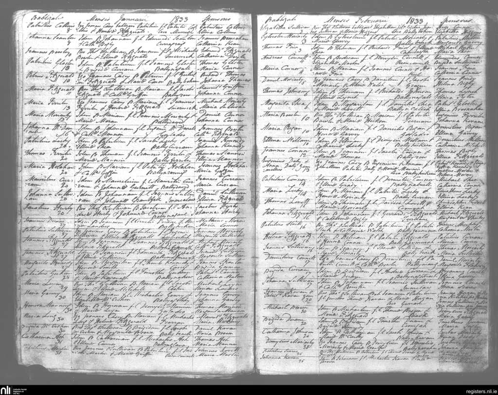Kilmelchidar; County of Kerry; Diocese of Kerry. Baptisms, Jan. 1833 to Feb. 1833