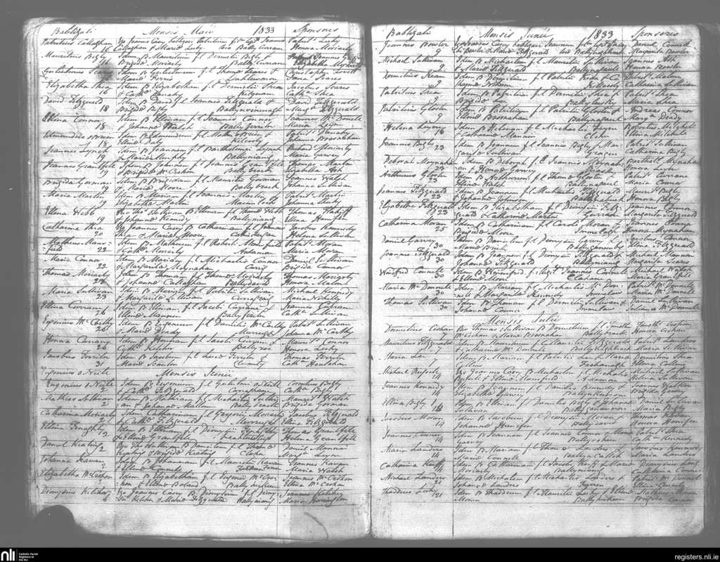 Kilmelchidar; County of Kerry; Diocese of Kerry. Baptisms, May 1833 to July 1833