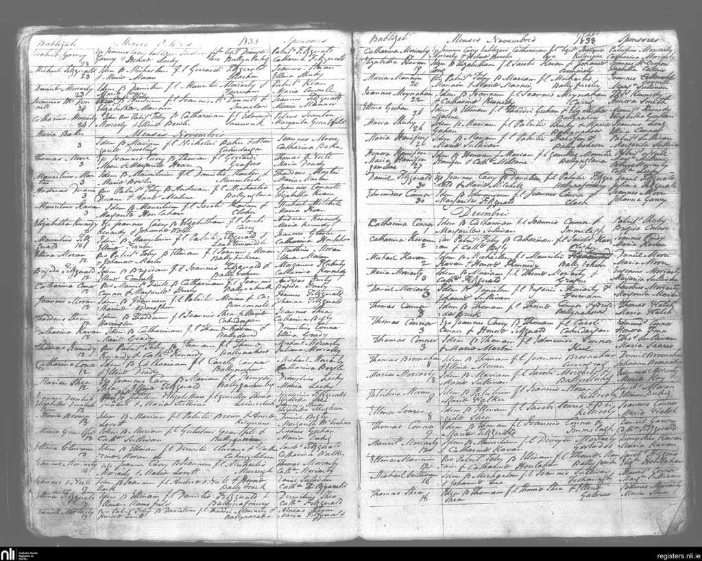 Kilmelchidar; County of Kerry; Diocese of Kerry. Baptisms, Oct. 1833 to Dec. 1833