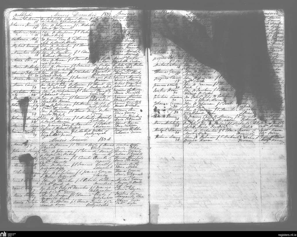 Kilmelchidar; County of Kerry; Diocese of Kerry. Baptisms, Dec. 1833 to Jan. 1834