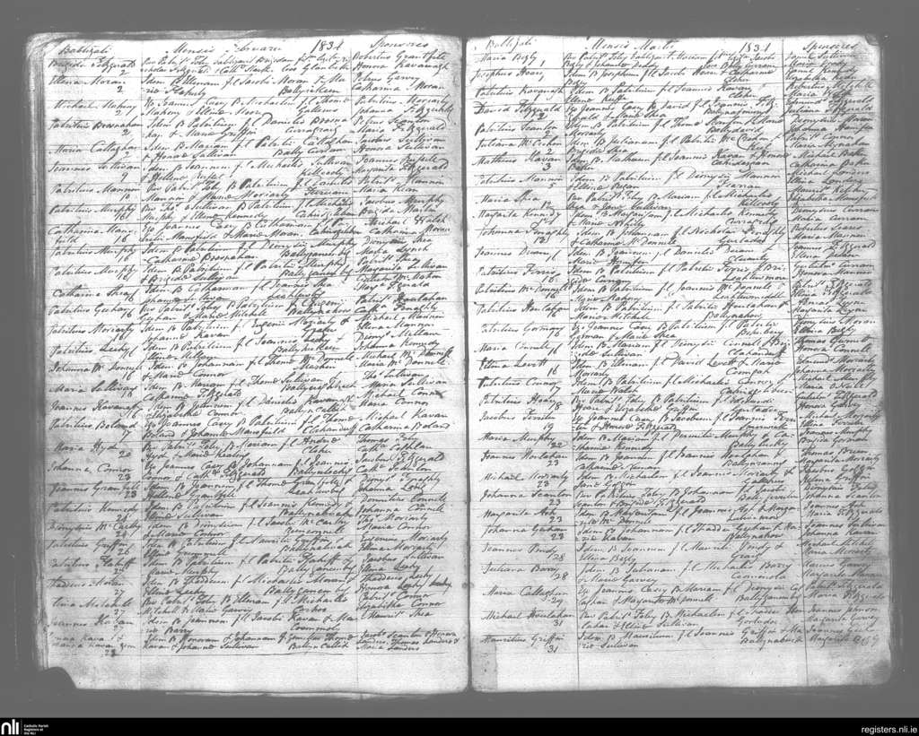 Kilmelchidar; County of Kerry; Diocese of Kerry. Baptisms, Feb. 1834 to Mar. 1834