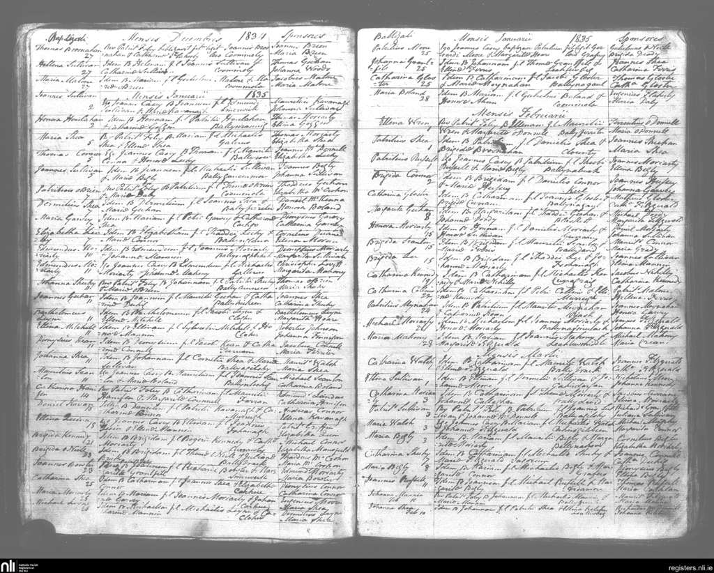 Kilmelchidar; County of Kerry; Diocese of Kerry. Baptisms, Dec. 1834 to Mar. 1835