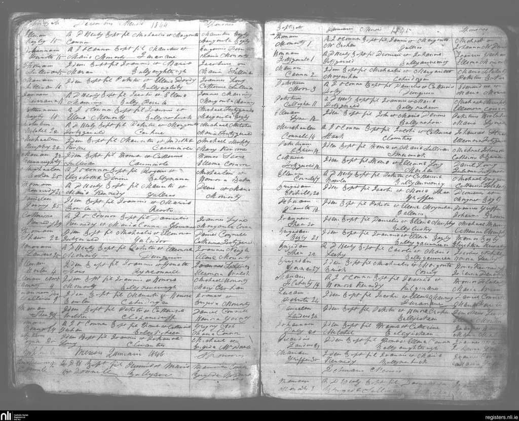 Kilmelchidar; County of Kerry; Diocese of Kerry. Baptisms, Dec. 1844 to Jan. 1846