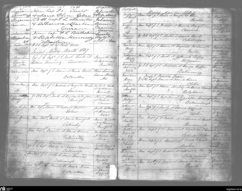 Kilmelchidar; County of Kerry; Diocese of Kerry. Baptisms, Oct. 1846 to May 1847
