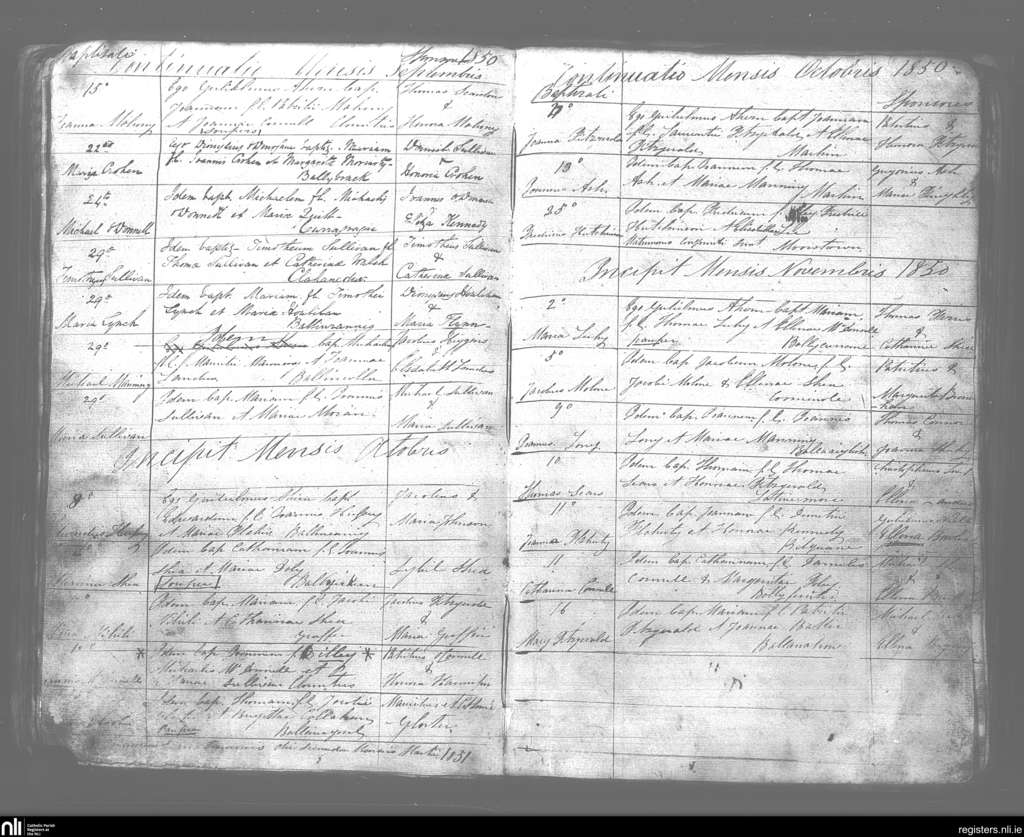 Kilmelchidar; County of Kerry; Diocese of Kerry. Baptisms, Sep. 1850 to Nov. 1850