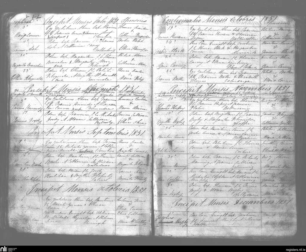 Kilmelchidar; County of Kerry; Diocese of Kerry. Baptisms, July 1851 to Dec. 1851