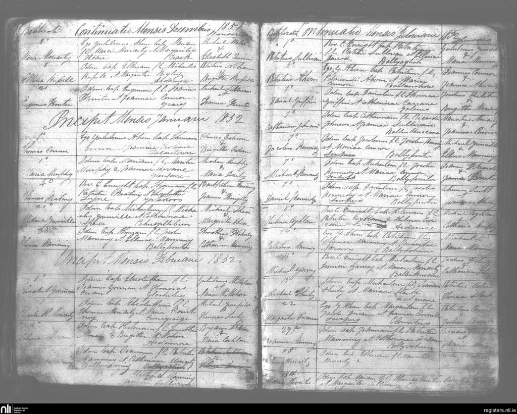 Kilmelchidar; County of Kerry; Diocese of Kerry. Baptisms, Dec. 1851 to Feb. 1852