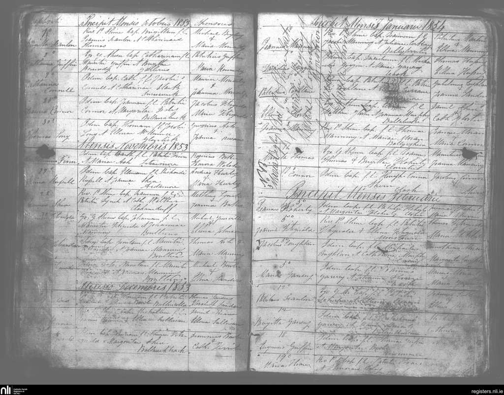 Kilmelchidar; County of Kerry; Diocese of Kerry. Baptisms, Oct. 1853 to Feb. 1854