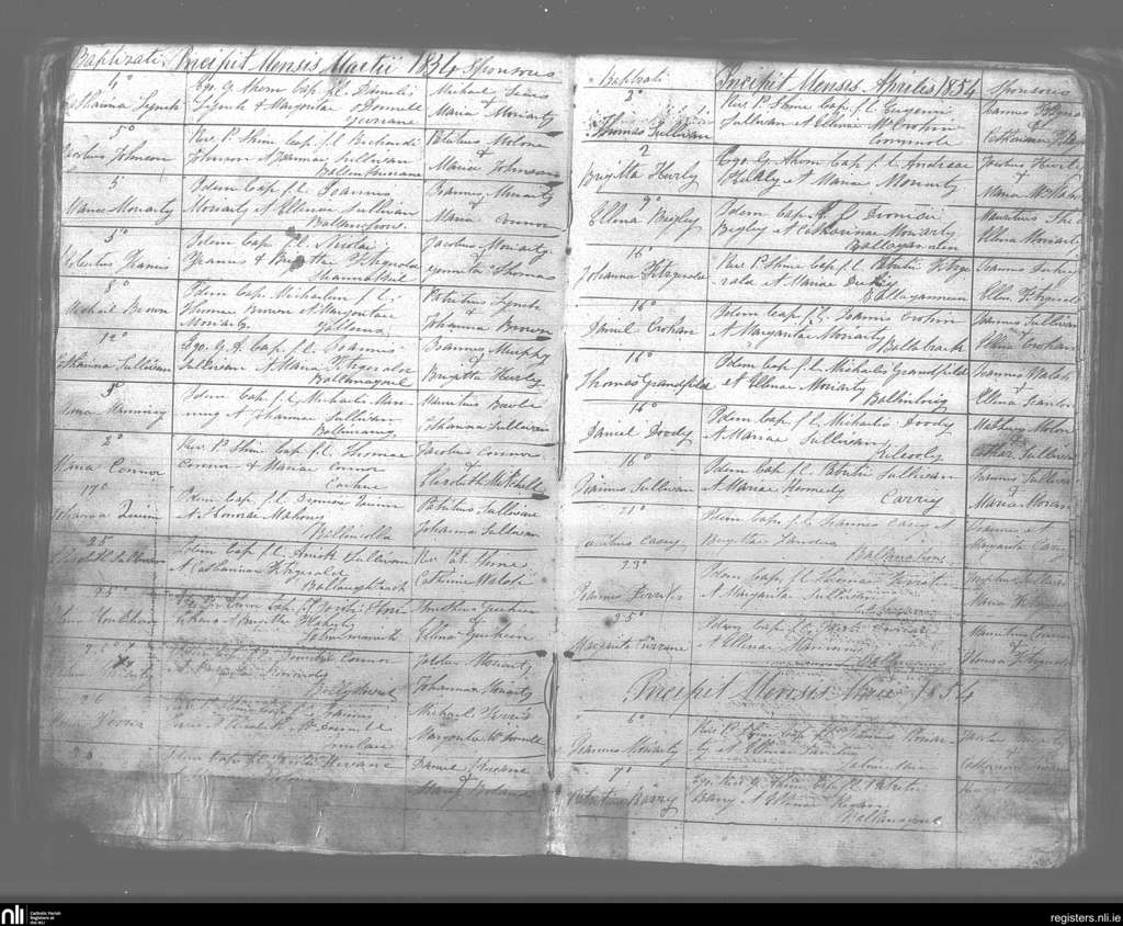 Kilmelchidar; County of Kerry; Diocese of Kerry. Baptisms, Mar. 1854 to May 1854