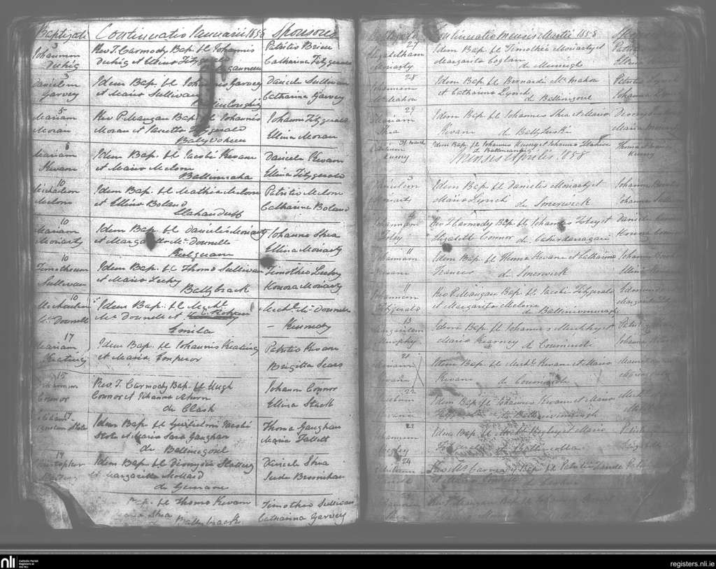 Kilmelchidar; County of Kerry; Diocese of Kerry. Baptisms, Jan. 1858 to Apr. 1858