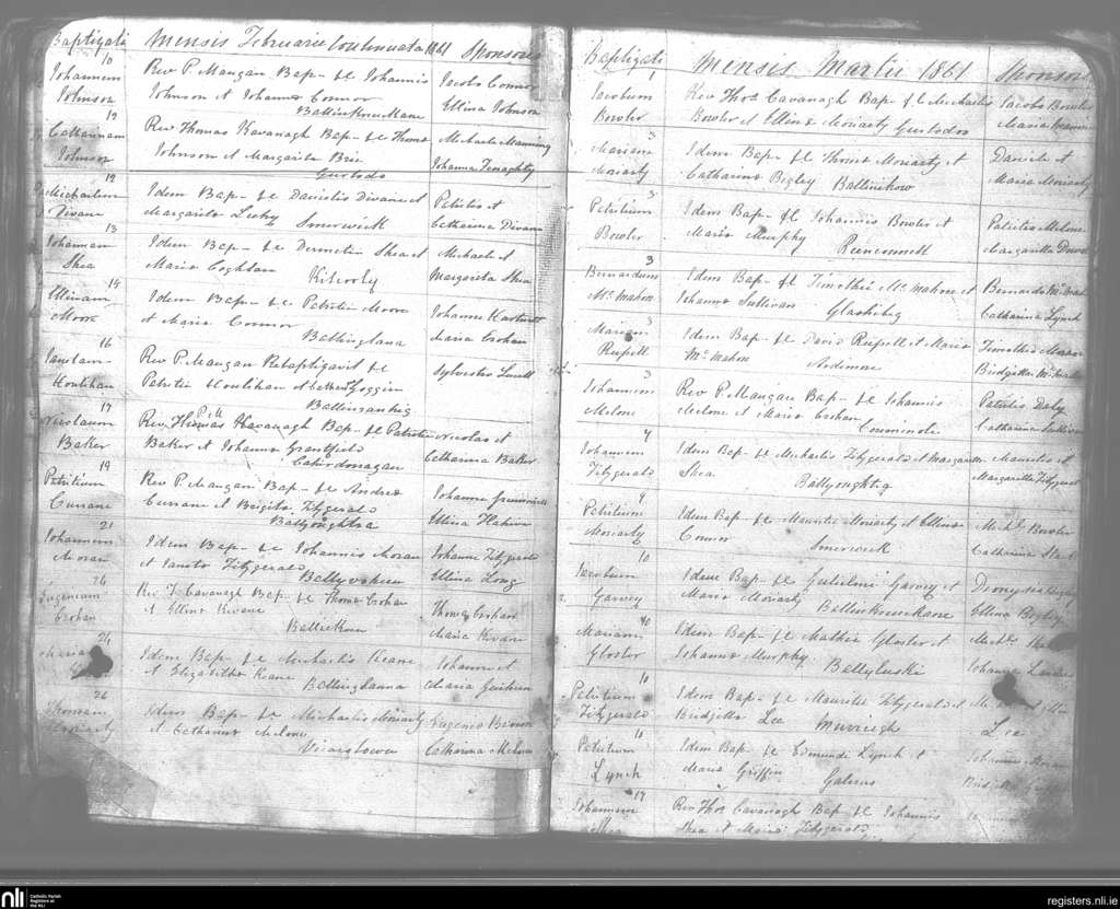 Kilmelchidar; County of Kerry; Diocese of Kerry. Baptisms, Feb. 1861 to Mar. 1861