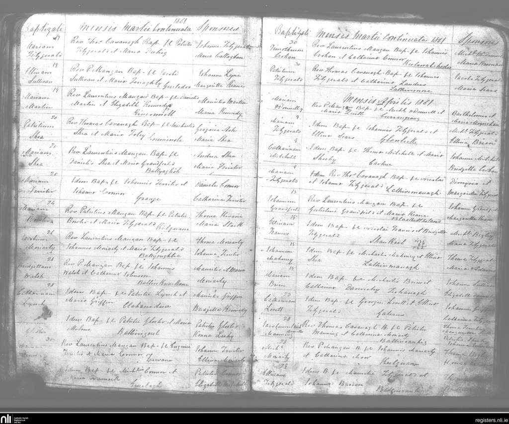 Kilmelchidar; County of Kerry; Diocese of Kerry. Baptisms, Mar. 1861 to Apr. 1861