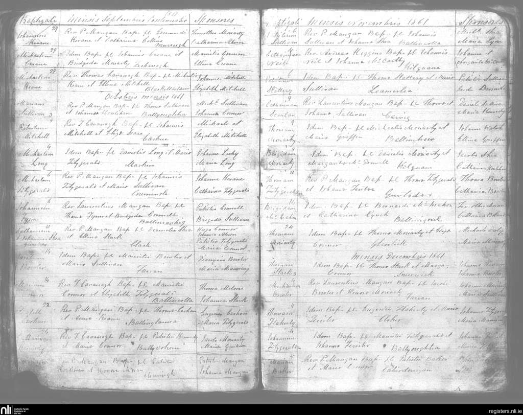 Kilmelchidar; County of Kerry; Diocese of Kerry. Baptisms, Sep. 1861 to Dec. 1861