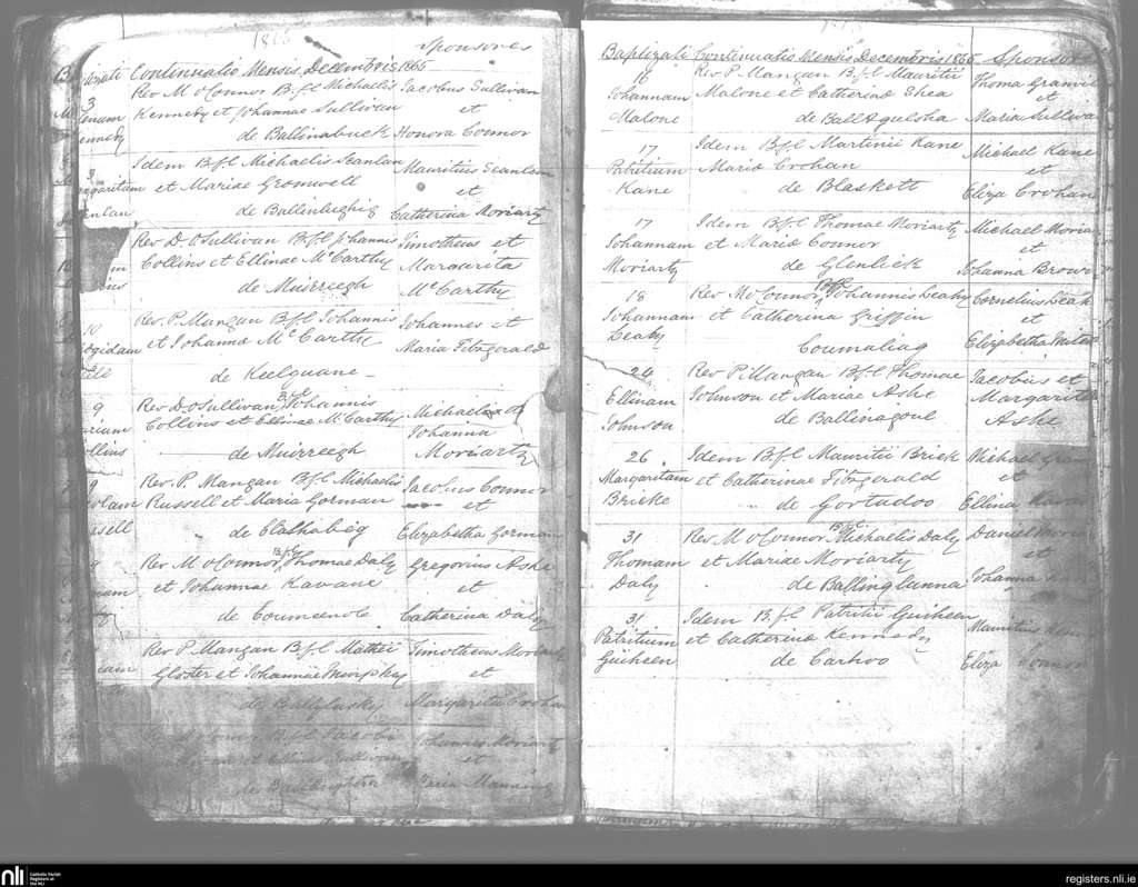 Kilmelchidar; County of Kerry; Diocese of Kerry. Baptisms, Dec. 1865 to Jan. 1866