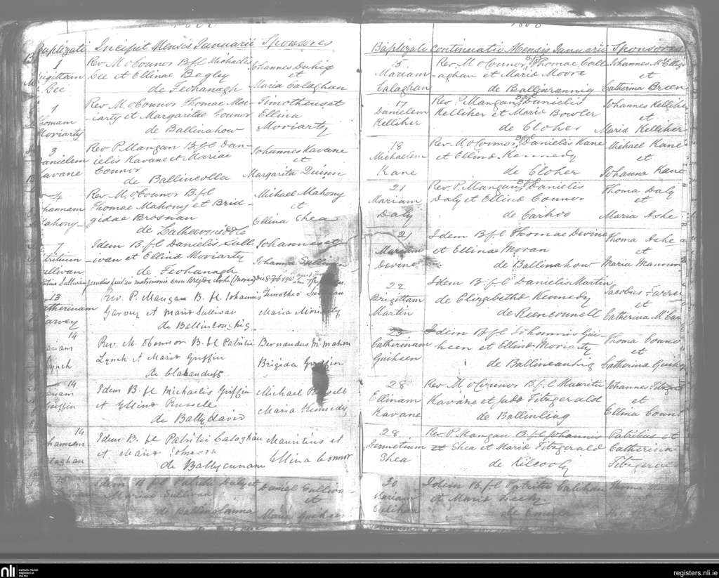 Kilmelchidar; County of Kerry; Diocese of Kerry. Baptisms, Jan. 1866